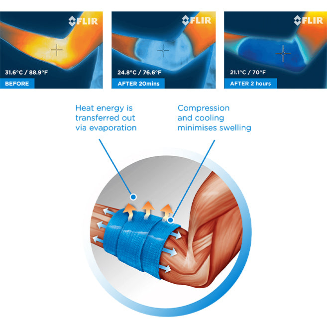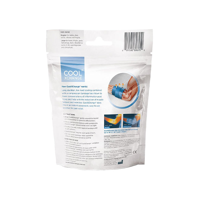 R.I.C.E (Rest, Ice, Compression, Elevation) is considered the best methodology in managing muscle sprains and strains. In combining the cooling and compression stages into one simple step, CoolXChange works immediately to reduce the amount of blood flow and heat in the injured area, which minimises pain and swelling for a faster recover.