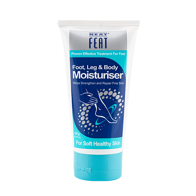 For daily maintenance of the foot we have a heavy-duty moisturizer, this water based product is easily applied and can be used daily after showering. This moisturizer is excellent for improving the thickness of the skin on the legs.This is a water based cream with rehydrating ingredients that can be used on a daily basis to maintain smooth feet and heels. This moisturizer is easily applied and can be used after cracks have been repaired by the Neat Feat Heel Balm. Neat Feat Foot and Leg Moisturizer is also highly effective in rehydrating other parts of the body (like the legs) which suffer from moisture loss and may require rehydration.