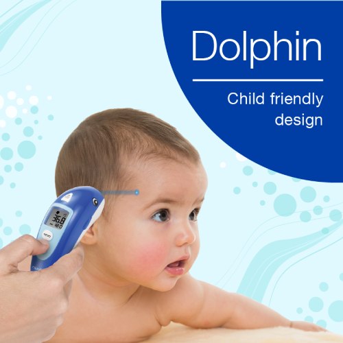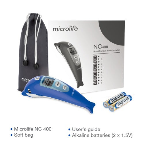 The Microlife non contact Infrared forehead thermometer NC 400, further to it's reliability, accuracy, and easy handling, allows gentle and non-invasive measurement of body temperature without touching the patient. The unique dolphin design was specifically developed to make a measurement more pleasant for children.