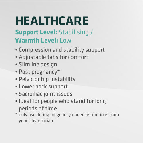 Slimline design belt with adjustable VR tabs for a comforting fit, the SI belt provides compression and stability support for the sacroiliac joint. This belt provides better stability through the core areas of the pelvis, hip and lower back to help reduce injury.